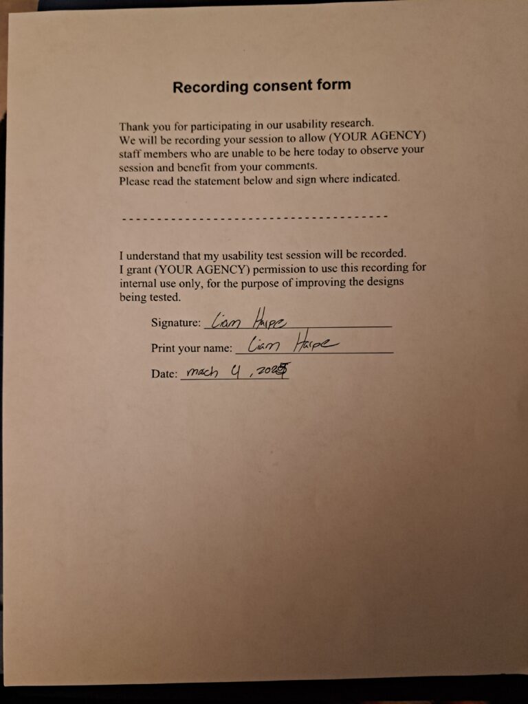 Before recording both users each of them needed to sign a consent that grants me permission to record them.